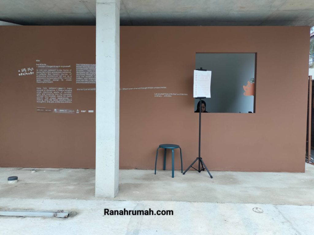 Tampak depan venue pameran A Life Less Ordinary di Bintaro, Jakarta Selatan yang berlangsung 10 Oktober – 22 November 2025. (Foto: Erly/Ranahrumah.com)