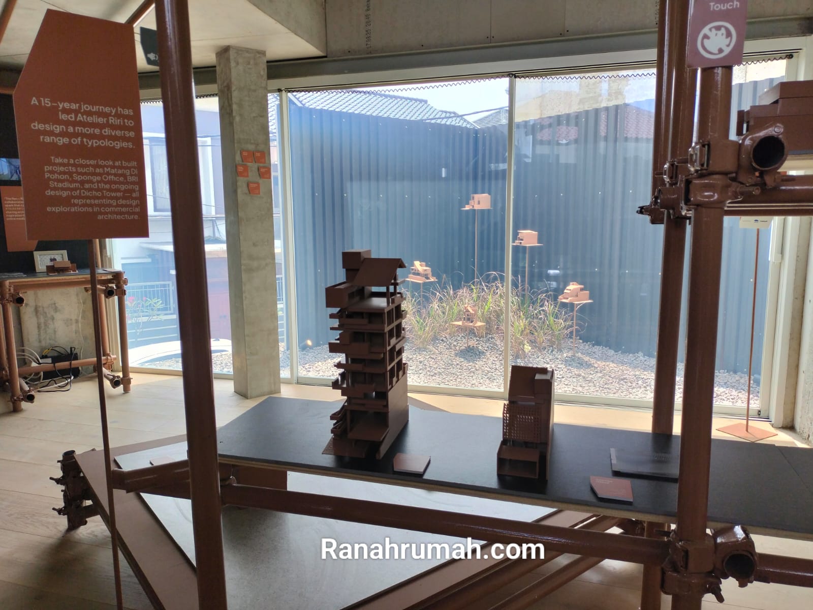 menampilkan maket beberapa proyek Atelier Riri - terbangun dan yang sedang on going