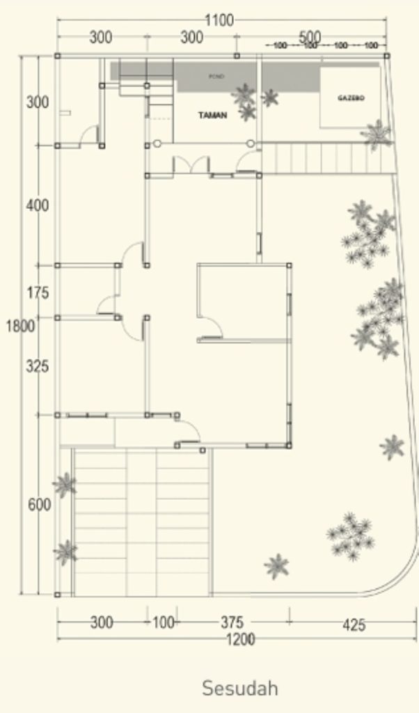 Selain butuh ruang tambahan, layout ruangnya pun perlu diubah sesuai selera mereka. Tambah 2 kamar, memindahkan area servis ke lantai atas, dan membuat taman adalah jenis renovasi pokok yang mereka lakukan.