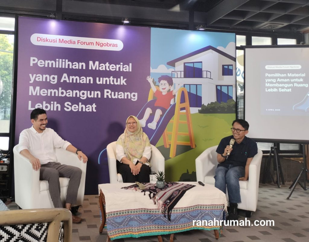 (Ki-Ka) Dokter Reza Fahlevi, Prof. Dr. Yuni Krisyuningsih Krisnandi, M.Sc, dan arsitek Adjie Negara membahas penciptaan rumah sehat dengan pemilihan matreial aman bebas timbal dan zat berbahaya. (Foto: Erly/Ranahrumah.com)