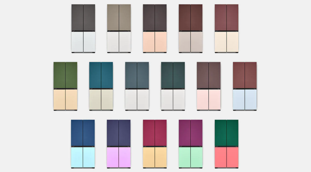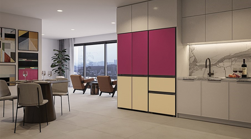 Di MoodUP™ dari LG STUDIO yang merupakan kulkas LG dengan opsi penggantian warna panel pintu, ini LG menyediakan 23 pilihan warna untuk panel atas dan 19 warna untuk panel bawah.