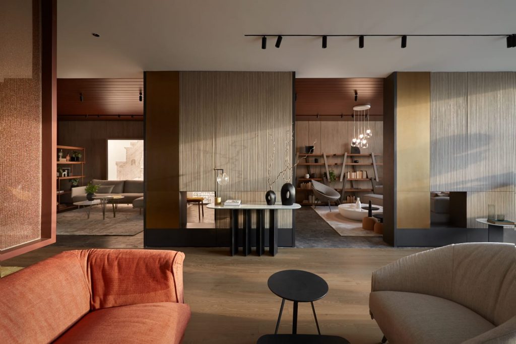 Untuk Bonaldo, Eko Priharseno dari AEDI Design memilih panel-panel kayu dan bidang-bidang natural untuk bisa menghadirkan karakter yang mengedepankan material dan kesederhanaan bentuk.