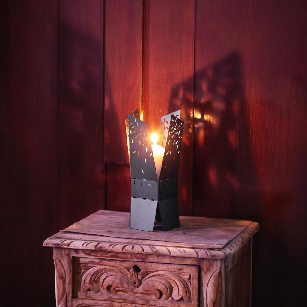 Agar ruangan tampak lebih nyaman, Felipe Assadi, arsitek asal Santiago, Chile ini merancang tempat lilin yang mirip dengan percikan api unggun. Desain tempat lilin ini mampu memberi bayangan yang dramatis pada dinding, sehingga suasana menjadi semakin semarak.