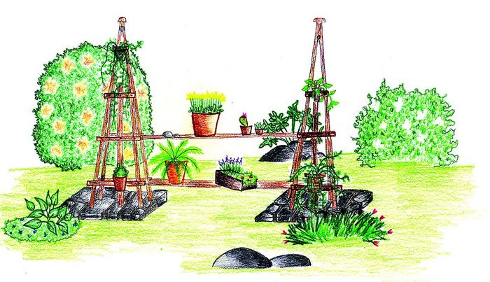 Untuk gaya taman country romantis ini, terlebih dulu harus disiapkan rak kayu. Sebaiknya pilihlah jenis kayu yang “tahan banting” terhadap segala jenis cuaca. Misalnya kayu damar laut, trembesi, dll. Atau jika bahan tersebut terlalu mahal, carilah kayu yang sudah dioven dengan baik dan diberi lapisan coating weathershield.