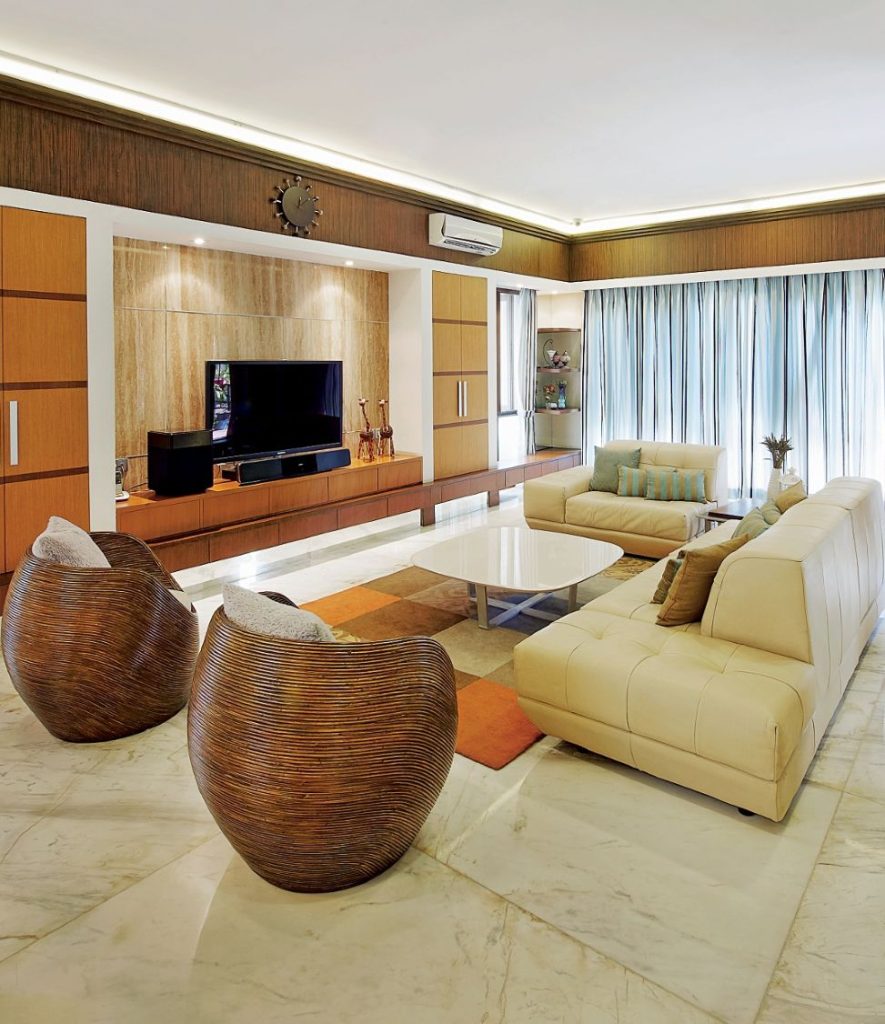 Cosmas tak hanya mengaplikasikan tema resor melalui pemilihan warna. Suara gemercik air kolam dan pemandangan hijau dari taman kecil membawa suasana relaksasi ala resor ke dalam rumah tinggal pengusaha ini. Selain itu, Cosmas juga membawa kayu jati sebagai meja bernuansa eksotis untuk menghiasi area-area bersantai keluarga. Untuk menopangnya dengan maksimal, penggunaan kaki-kaki stainless steel yang kuat menyeimbangkan kesan resor ini dengan gaya modern.