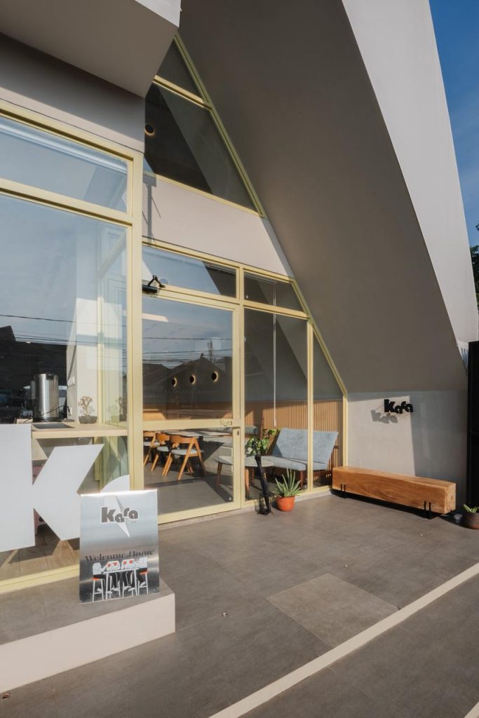 Ikonik dan berkarakter dengan fasad segitiga yang menjadi penanda visual Kara Lil Sis Café sehingga mudah dikenali. (Foto: Dok. Delution)
