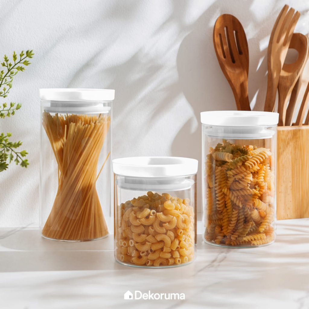 SORA Toples merupakan wadah plastik dengan tutup kedap udara yang mengombinasikan warna putih dan bening memberikan kesan ringan.