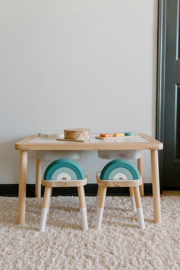 Menyesuaikan umur sang anak, perabot dan dekorasi ini dihadirkan dalam ukuran mini dengan permainan warna yang menarik. Versi mungil barang ini menjadi sarana belajar mengenal berbagai jenis hewan dan perlengkapan yang banyak ditemui sehari-hari. Warna-warni cerah mewakili jiwa ceria sang anak juga hadir melalui wallcover dan gorden.