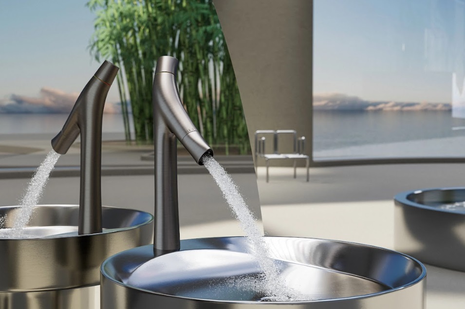 Menghemat ruang dengan desain minimalisnya dan unik, karena menampilkan bentuk keran yang berkelok lembut seperti halnya aliran air. Oleh sang desainer, ketiga unsur ini disatukan dalam satu bentuk produk yang secara visual terlihat sangat harmonis ketika ditempatkan dalam sebuah ruang dan bahkan dapat meningkatkan estetika rumah dan dilengkapi dengan handle keran yang sangat ergonomis.