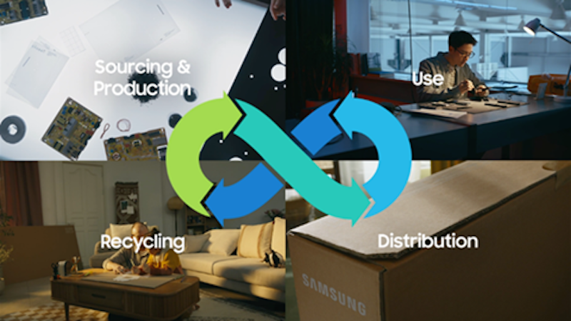 - Samsung membuka jalan dengan tiga pendekatan inovatif terkait keberlanjutan: Mengubah CO2 menjadi bahan daur ulang, menggunakan lebih sedikit material, dan melakukan upcycling pada produk dan kemasan. Produk TV dan remote control Samsung pada tahun 2023 menggunakan resin daur ulang yang terbuat dari setidanya 50% bahan daur ulang. Selain itu, Samsung telah melakukan upaya signifikan untuk memastikan penggunaan kemasan yang berkelanjutan, mulai dari kotak kemasan hingga semua pembungkus produk di dalamnya.