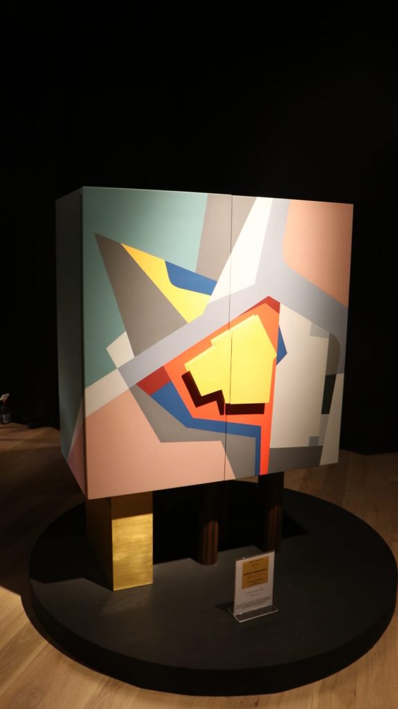 Sementara Bunga Yuridespita berkarya pada satu lemari penyimpanan jam tangan wanita, dan dua lemari penyimpanan minuman.“Dalam kolaborasi ini saya meneruskan eksplorasi saya dalam karya instalasi, patung, dan lukisan yang selama ini saya lakukan. Untuk mencapai kualitas interaktif antara penikmat dengan hasil akhirnya, saya memanfaatkan permukaan luar lemari dan juga kualitas tiga dimensi dari desain lemari,” papar Bunga Yuridespita, seniman lulusan ITB yang saat ini berdomisili di Bandung.