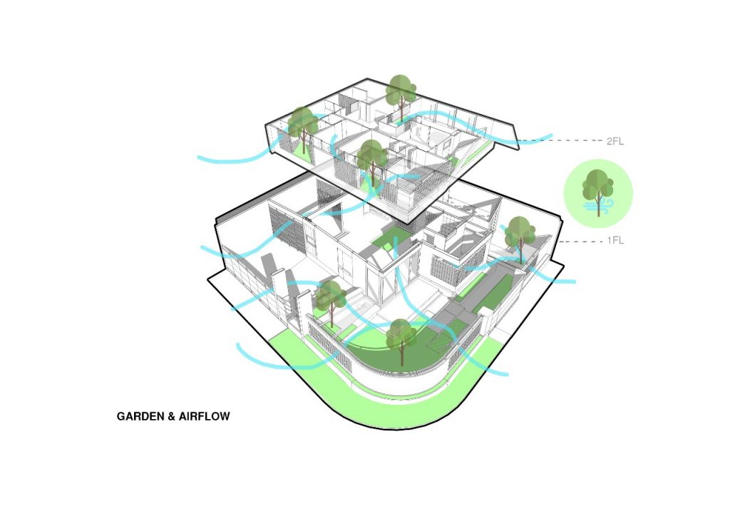 Selain alasan tersebut, Flick house menerapkan konsep tanpa sekat supaya udara yang masuk dapat terorganisir dengan baik tanpa harus terhalang sekat yang ada.