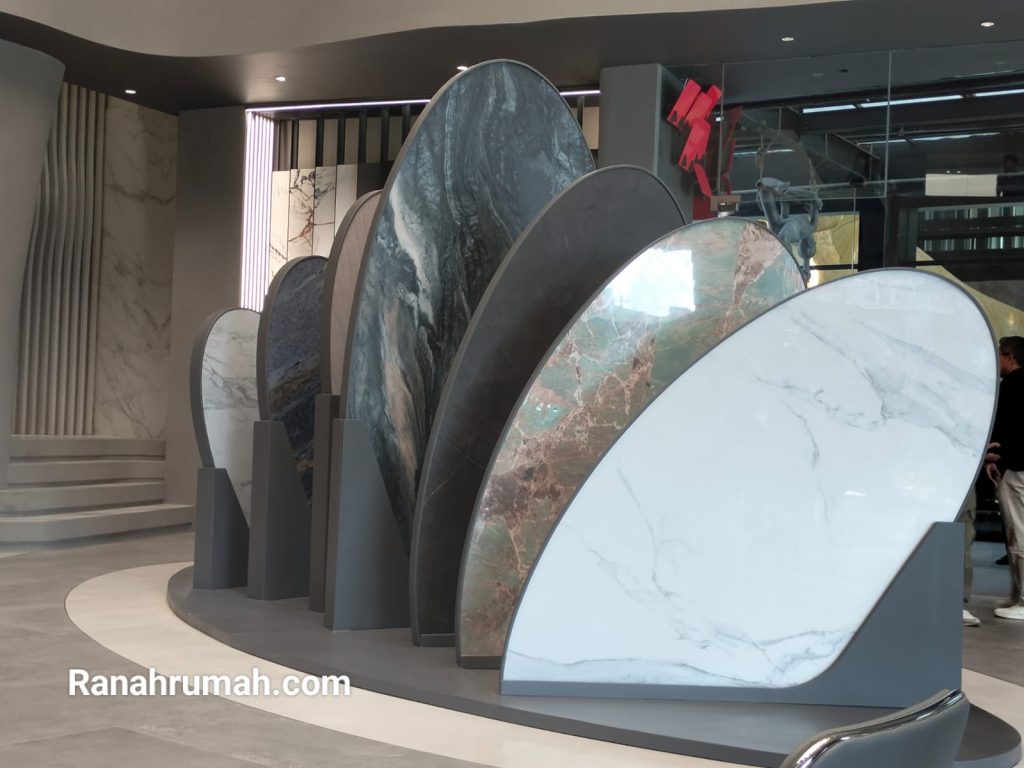 Istimewanya, dengan kemajuan teknologi ini menjadi pencapaian tanpa batas bagi Sandimas untuk menghadirkan granite tile slab besar yang pengaplikasiannya dapat menambah estetika dan kesan mewah pada ruang. “Granit slab ini mirip sekali tampilannya dnegan granit alam tapi tak ada cacat-cacatnya. Granit slab besar ini tersedia pilihan yang dengan tekstur maupun tanpa tekstur. Bisa dikustom sesuai selera baik motif maupun ukurannya,” tambah Linda Tan.