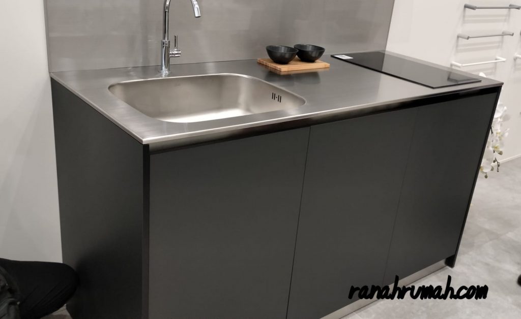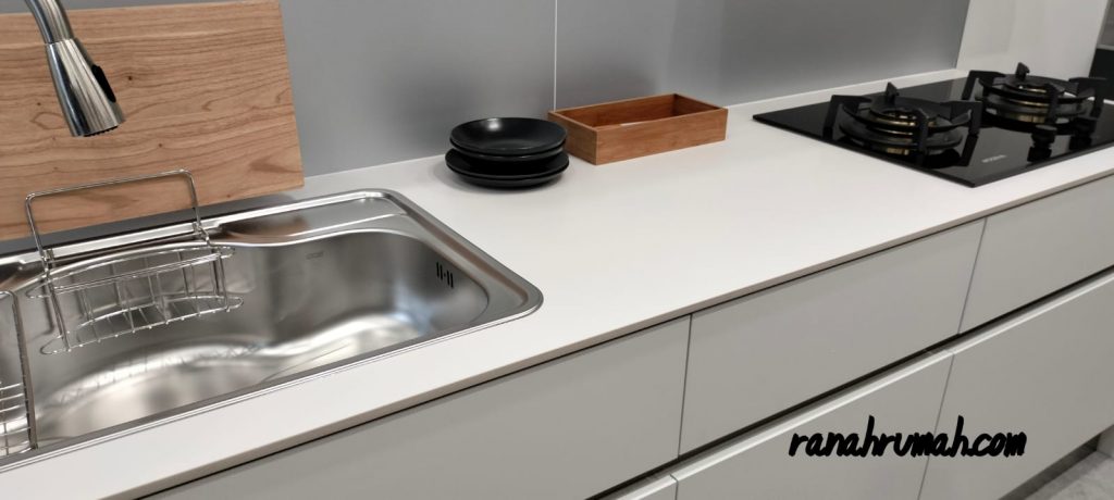 Inspirasi compact kitchen hadir dengan rancangan bagian atas dan samping meja dibuat setipis mungkin sehingga menampilkan desain yang sederhan, presisi, dan terkesan canggih. Warna doft pilihan yang berkualitas tinggi membuat kitchen tidak mudah terlihat kotor.