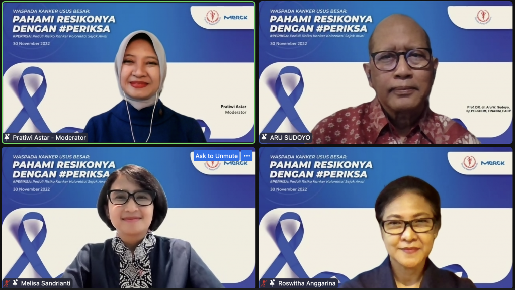 “Banyak faktor risiko kanker kolorektal yang perlu diwaspadai, selain riwayat keluarga, juga kebiasaan diet rendah serat namun tinggi lemak; gejala kanker usus besar lainnya termasuk pendarahan saat buang air besar, kelelahan, dan kelemahan, serta terpapar terhadap polusi udara dan air – khususnya zat karsinogen penyebab kanker, kuesioner #PERIKSA ini dapat membantu masyarakat tentang pemahaman faktor risiko kanker kolorektal,” jelas Prof. Aru Sudoyo.